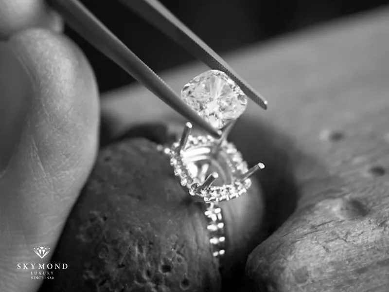 - Sử dụng kỹ thuật "Chấu ảo": Một số kiểu chấu được nghệ nhân mài bóng loáng như gương xung quanh viên đá, tạo cảm giác đó là một phần của kim cương, giúp viên chủ trông to thêm ít nhất 1 ly (1mm).